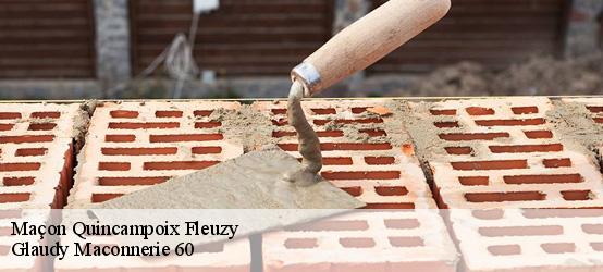Notre entreprise de maçonnerie Glaudy Maconnerie 60 sise à Quincampoix Fleuzy vous offre ses services pour la réalisation de tous vos projets construction. Notre équipe de maçons professionnels vous apporte leur savoir-faire technique pour l'aménagement de votre espace intérieur et extérieur. Pour préserver la qualité de nos services, nous nous engageons également à toujours respecter tout ce qui est prévu dans le cahier des charges, les délais des travaux et votre budget. Ainsi, n’hésitez pas à nous contacter si vous vous trouvez à Quincampoix Fleuzy ou dans ses environs. Nous ferons tout pour vous satisfaire.