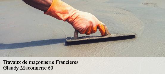 Pour tout ce qui concerne vos travaux de maçonnerie, notre entreprise Glaudy Maconnerie 60 est le plus à même de répondre à vos besoins. Polyvalente, notre équipe de maçons prend en charge de tous vos projets que ce soit en neuf comme en rénovation. Rien n’a de secret pour nous en ce qui concerne la maçonnerie. Nous pouvons travailler sur tous les types de bâtiment qu’importe le matériau à travailler (brique, pierre, béton…). Vous avez un projet que vous désirez confier à des professionnels à Francieres ou dans sa région ? Notre entreprise Glaudy Maconnerie 60 est pour vous le prestataire idéal qui pourra garantir un travail à succès.